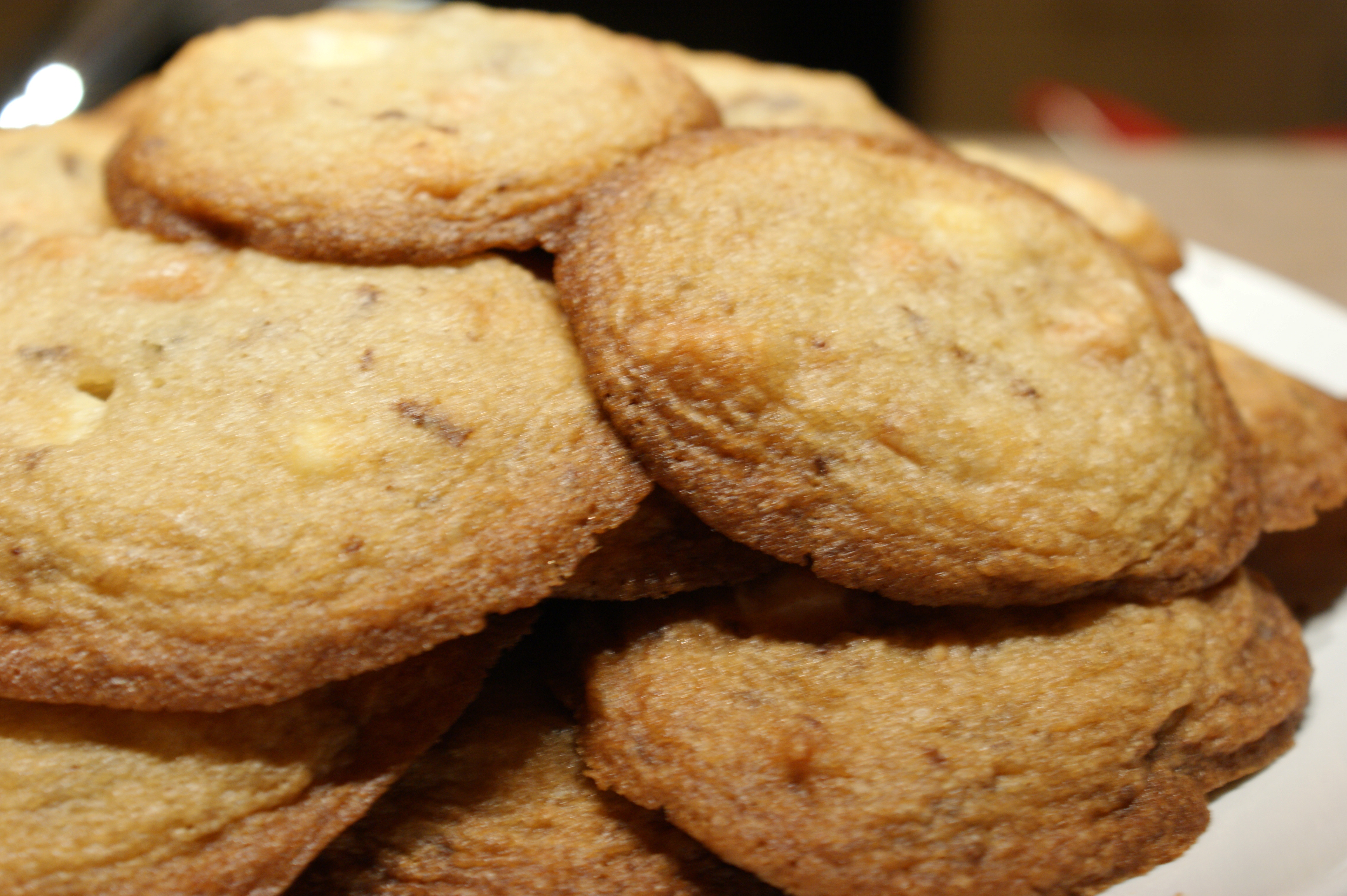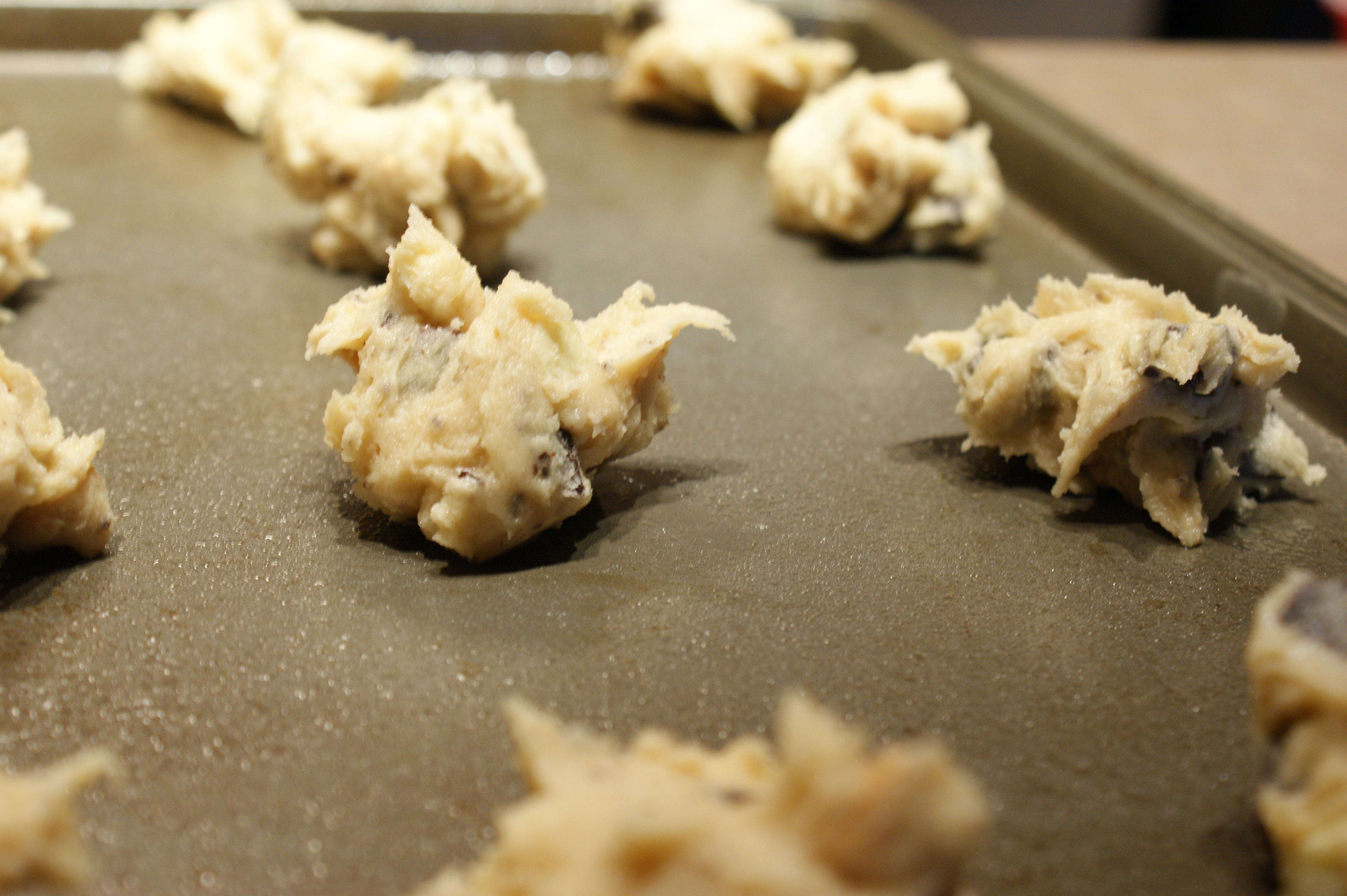 This time around, I went with a different version of the Triple Chip Cookies. I chopped some baker’s semi-sweet chocolate and white chocolate, and threw in some butterscotch chips. I used about a quarter of a cup of each, getting me to the three-quarters of a cup of fillings I recommend for the recipe.