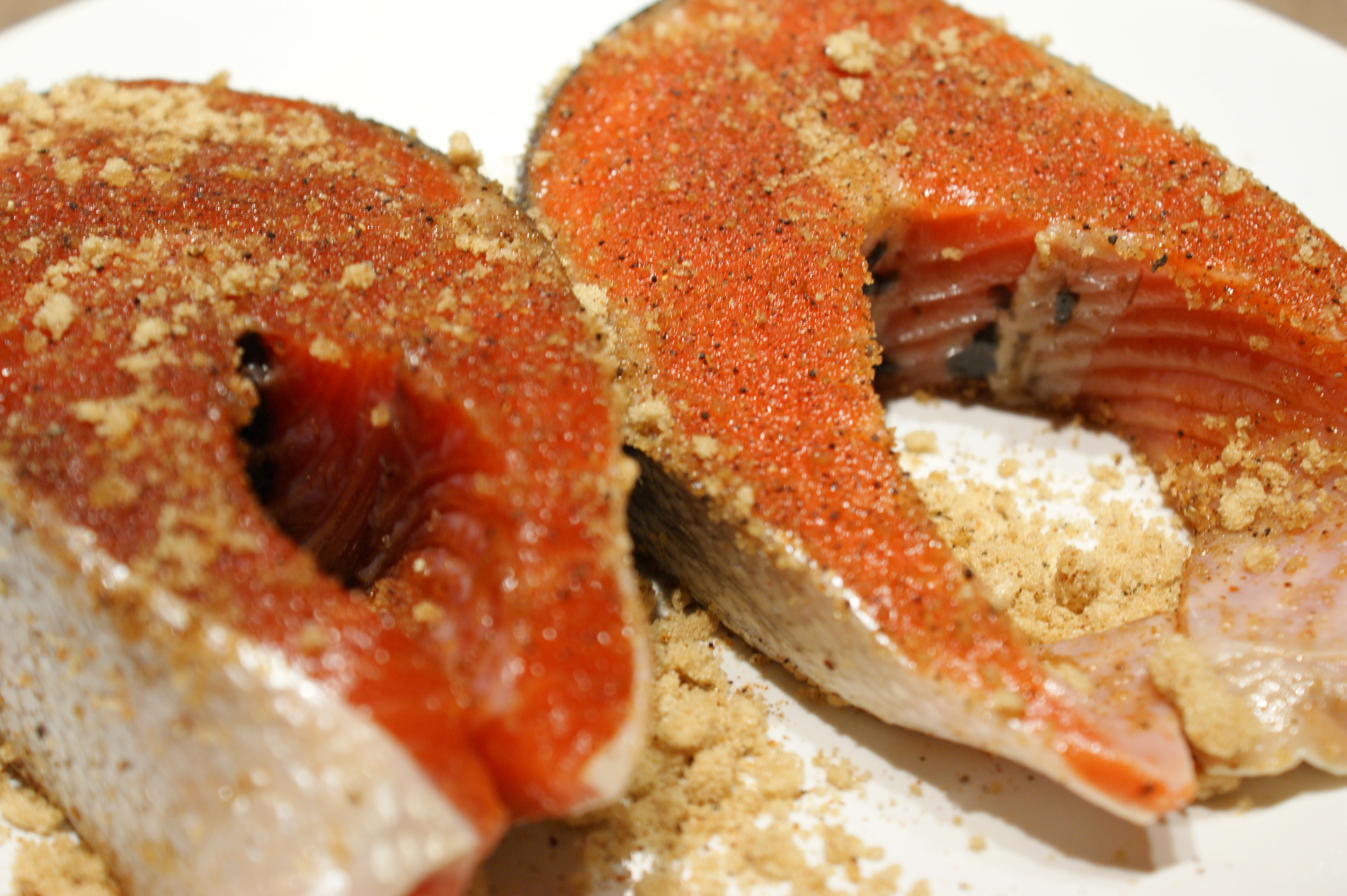 I love using this sweet and spicy rub on salmon. The flavours from the sugar and chili powder seep into the salmon as it cooks, giving the entire piece of fish a nice, subtle flavour. I usually use the rub on a fillet of salmon when barbecuing, but it works great on a salmon steak, too.