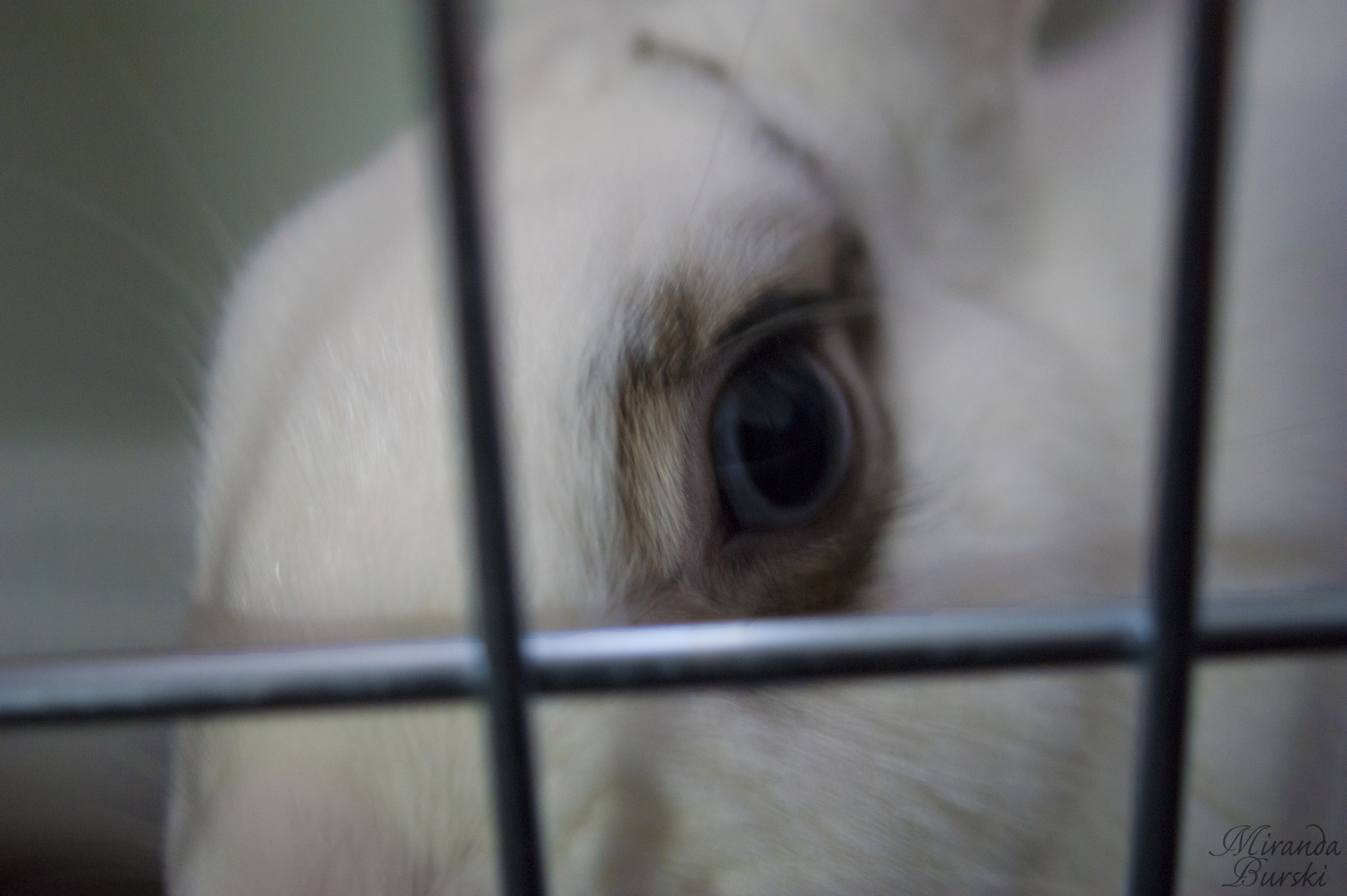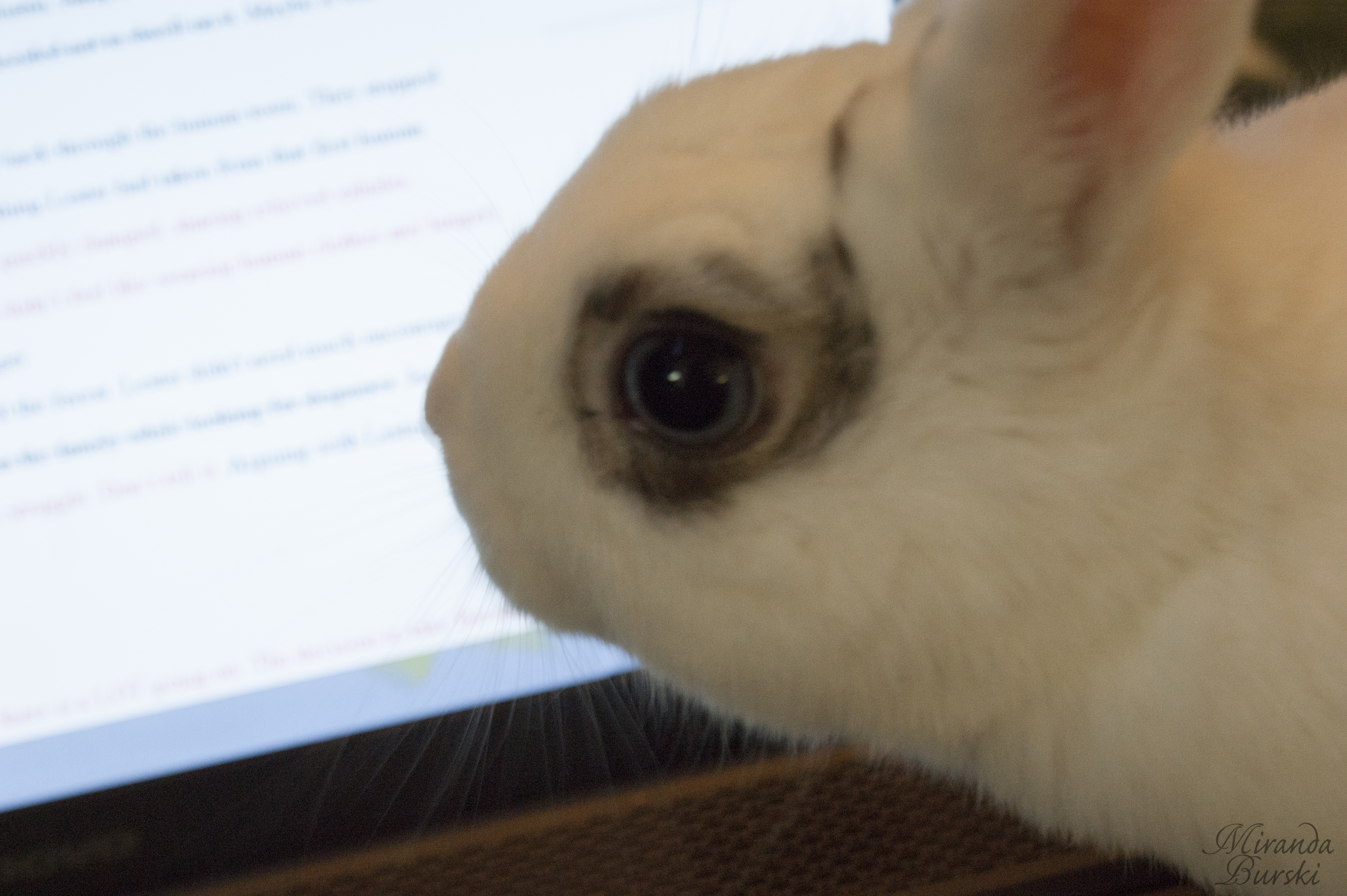 I kind of love her eyes. Before I got her, I didn’t even know rabbits could have blue eyes–never mind two different-coloured eyes. Sometimes, I can’t help focusing the camera on that left eye and hoping the colour comes out just right.