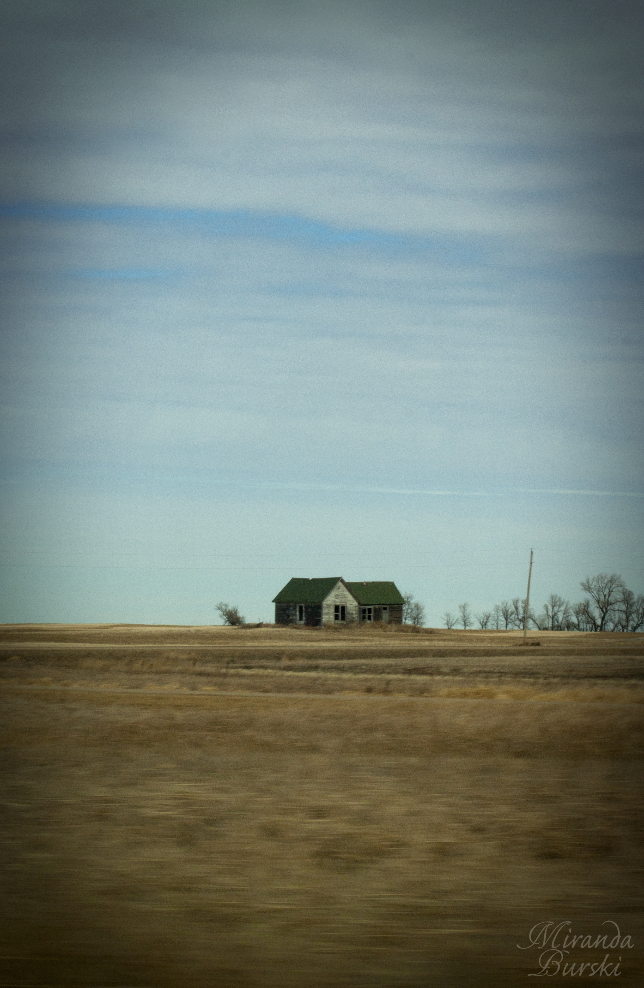 There were plenty of old, abandoned-looking farmhouses in the fields along the highway. I tried getting pictures of most of them, but this was the one that turned out the best: