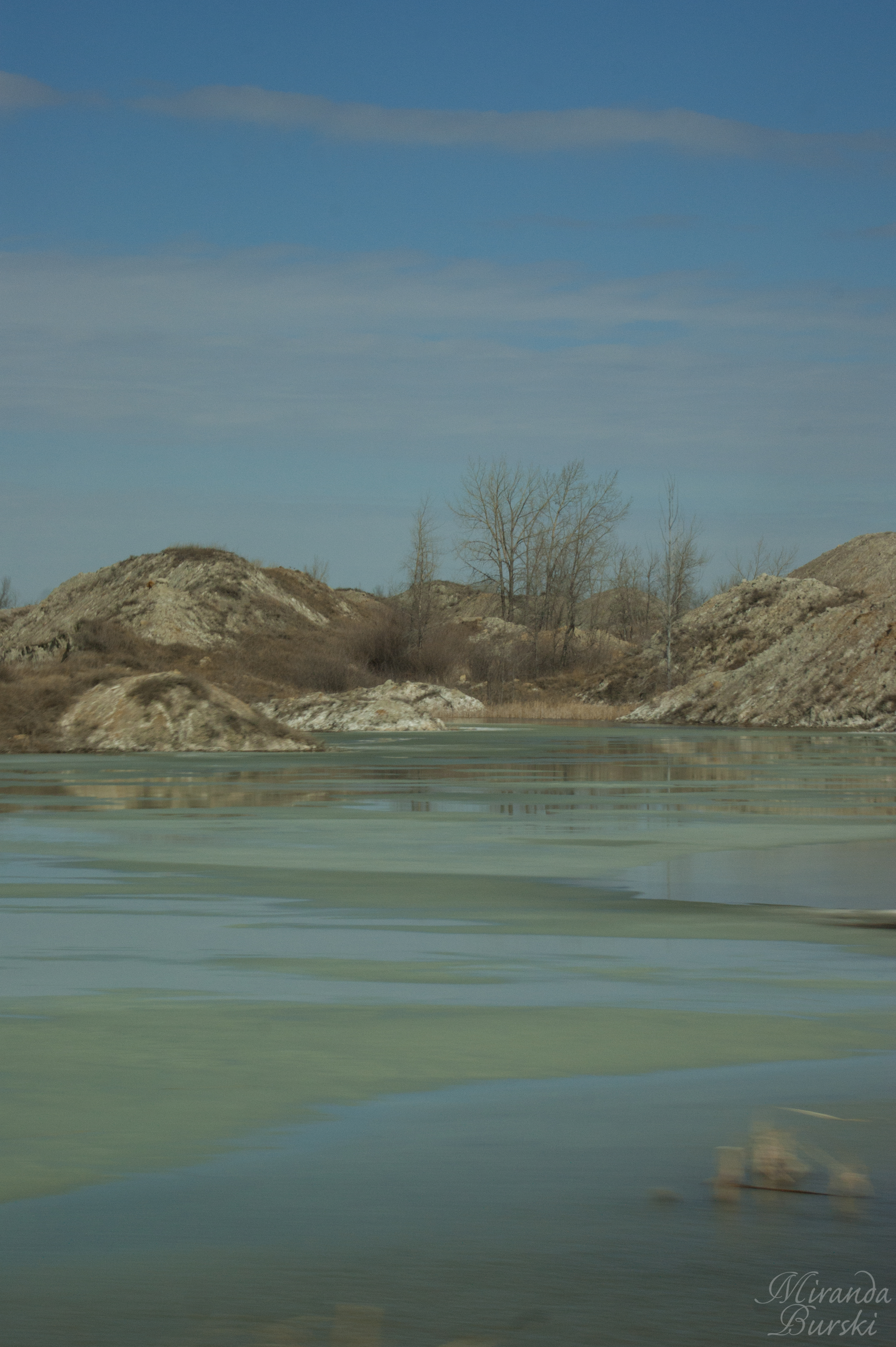 Every once in a while, we passed by a creek or dugout that was partially frozen. I loved the different colours in the ice and water, and the way this particular creek snaked through the landscape: