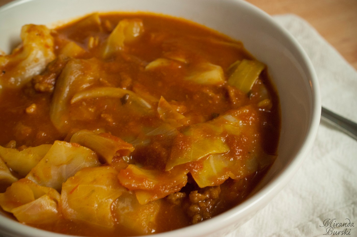 I did make a few slight alterations to the recipe, though. The onion I’d bought… well, it didn’t look so great after I’d peeled it. So I switched that out for some onion powder, instead. Then I added an extra half a cup of broth, as there seemed to be far too little in the pot. I’m still not completely happy with the broth-to-cabbage ratio, so I think I’ll add a bit more next time, but other people may not mind it so much. I just tend to like lots of liquid in my soup.