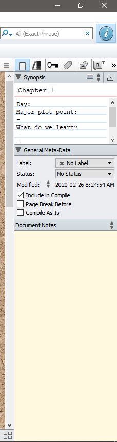 Outside of those two questions, any details I want to fill in get placed in the “document notes” section of the inspector panel. This isn’t really part of the corkboard feature, but I find it to be a good complement to it.
