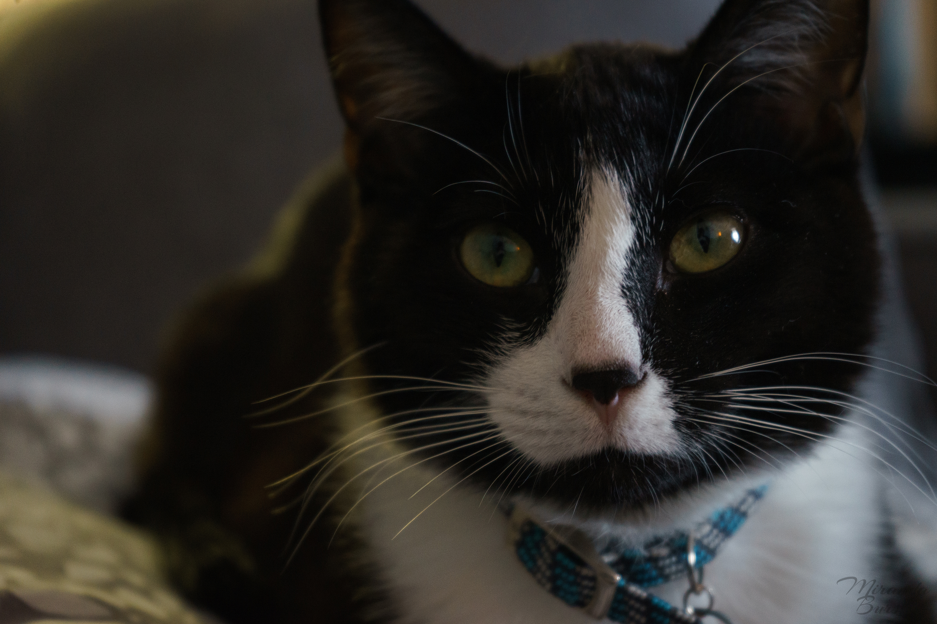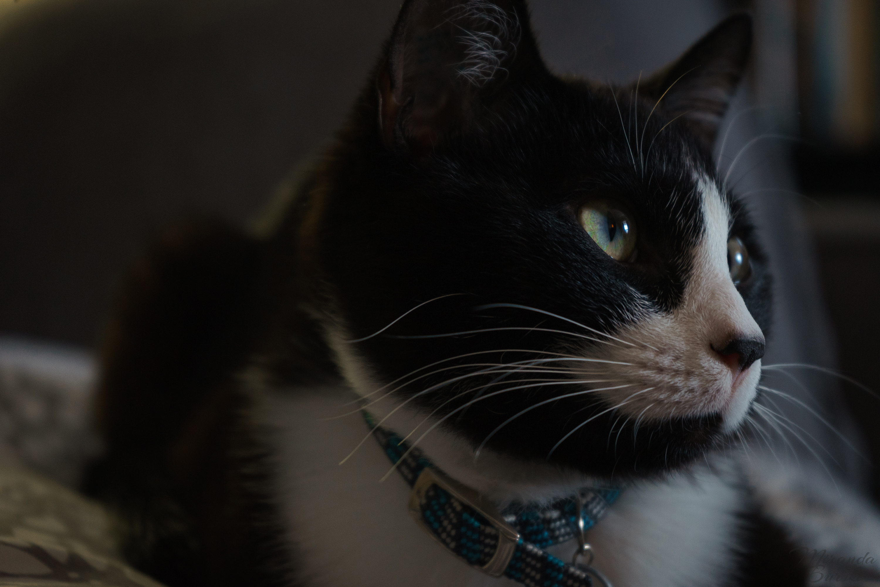 Getting these portraits took some effort. First was setting up a pillow in a spot likely to tempt him, but that still allowed for light, a decent background, and space for me and my camera. Next was waiting for him to come down from one of his hyperactive episodes. And finally, there was actually getting the photograph—those usual acts of framing and focusing and adjusting settings.